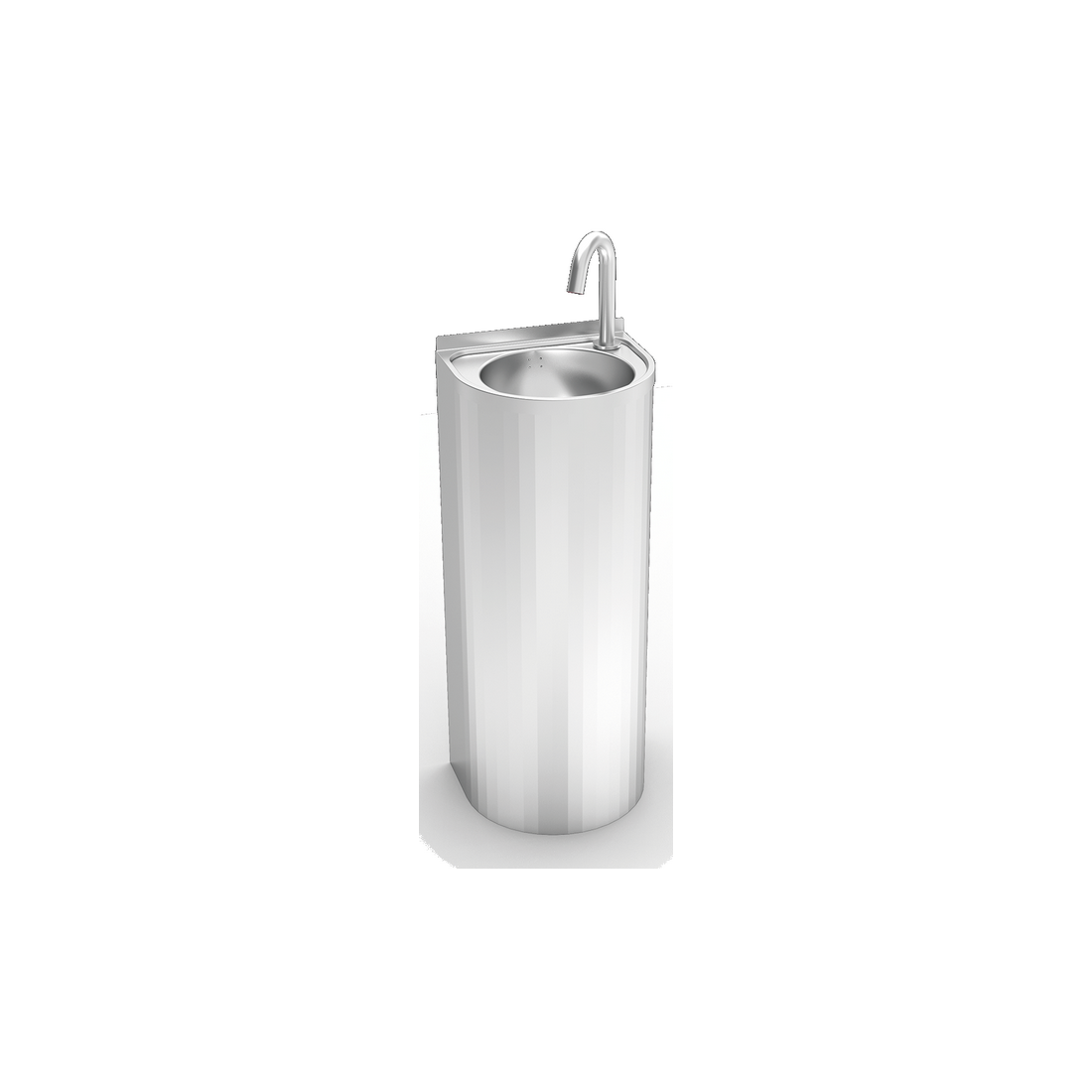 Lavamanos industrial de columna, con funcionamiento electrónico a pilas. Incluye grifo giratorio. Dimensiones reducidas: 350 x 300mm.