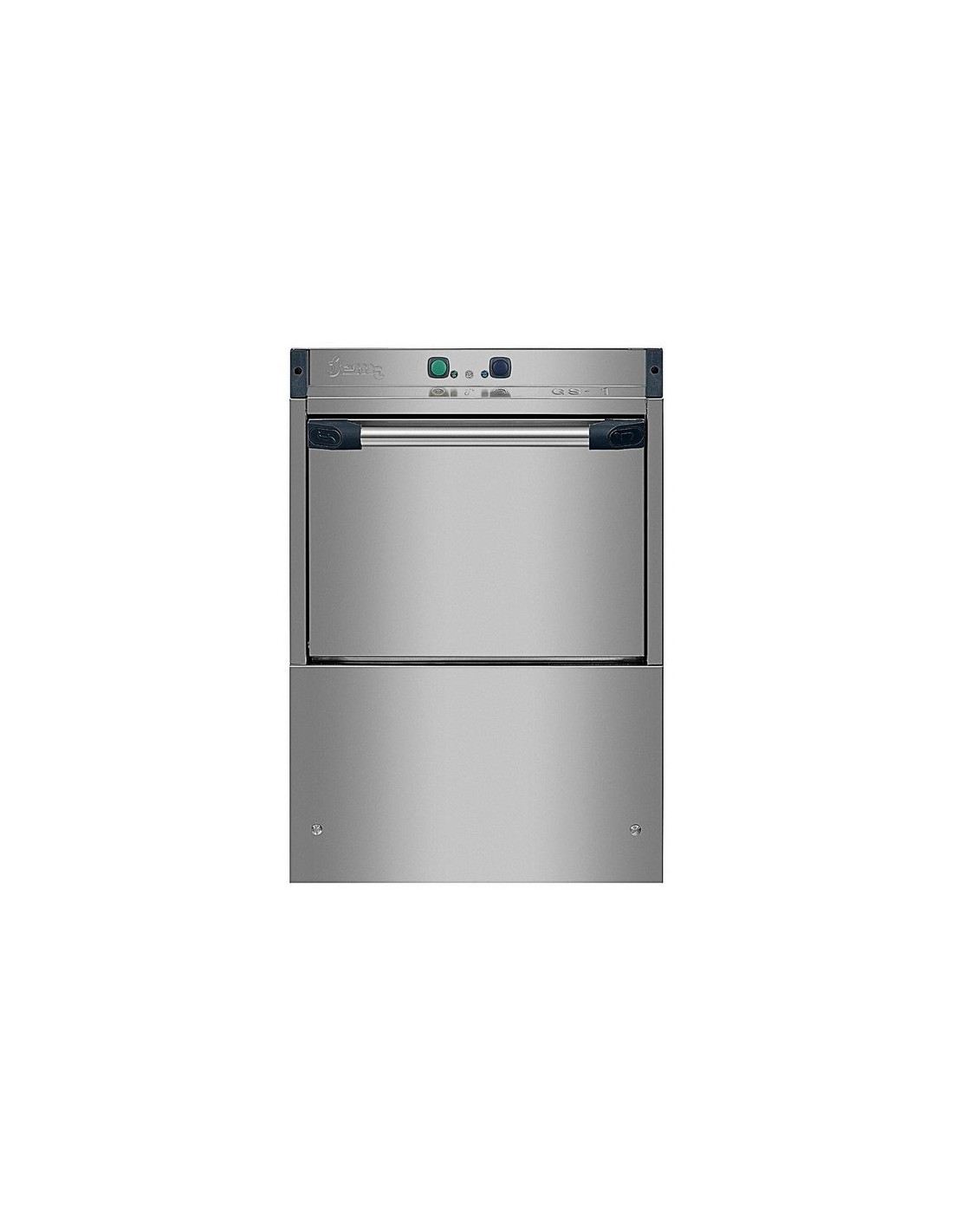 con cesta de 50x50 cm, producción de hasta 480 platos/hora y ciclo rápido de 2 minutos. Funciona a 230 V, incorpora doble filtro, brazos giratorios y una altura útil de lavado de 36 cm. Compacto y eficiente para cocinas exigentes.