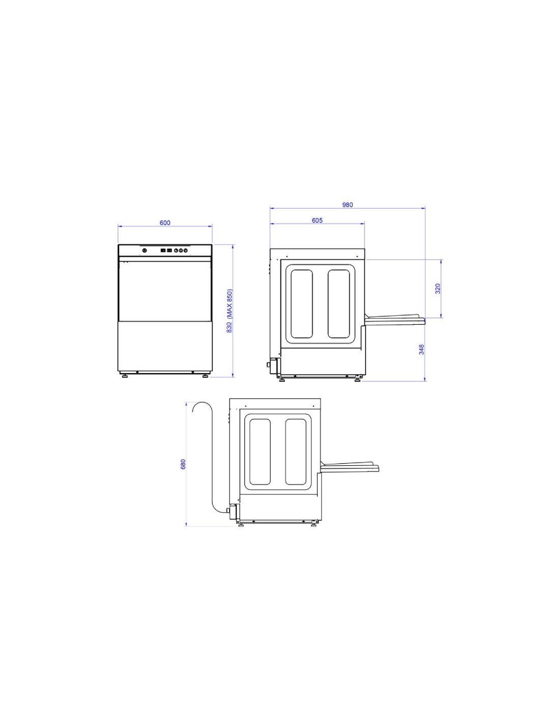 Acepta hasta 320 mm, suficiente para platos llanos, hondos, bandejas pequeñas, vasos y material estándar de hostelería.