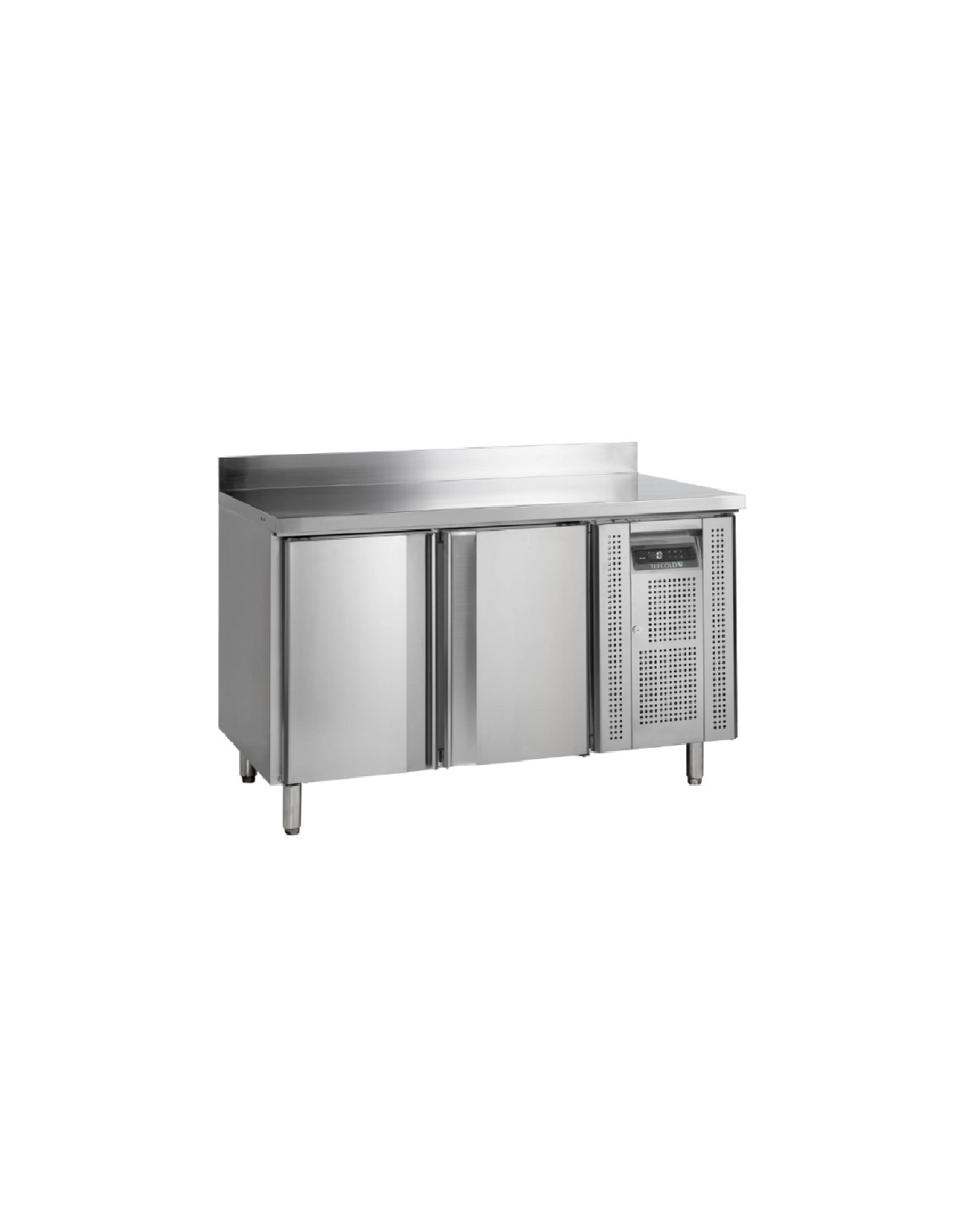 Mesa de congelación 2 puertas fondo 700 mm en acero inoxidable SS304, rango de temperatura -20 °C a -10 °C, potencia 470 W y capacidad 272 L. Sistema de refrigeración ventilada, control electrónico y descongelación automática. Medidas: 1360×700×980 mm. Clase energética D.