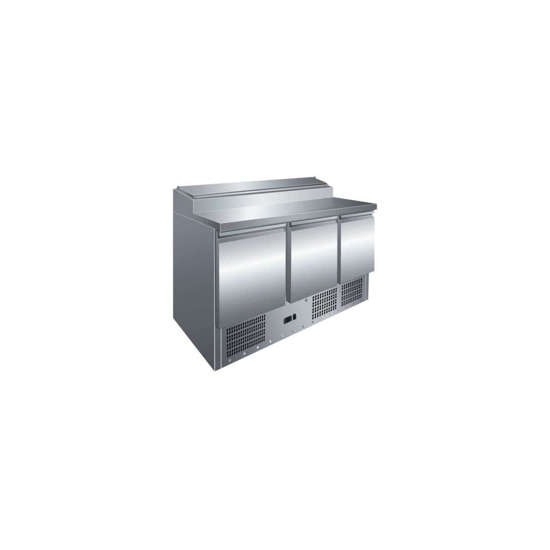 Mesa Refrigerada de preparación con superficie de acero inoxidable, ideal para ensaladas. Su capacidad es de 400 Litros y es posible introducir cubetas GN 1/1 en su interior. En su superficie tiene una zona refrigerada apta para colocar 8 cubetas GN 1/6 fondo 150mm.