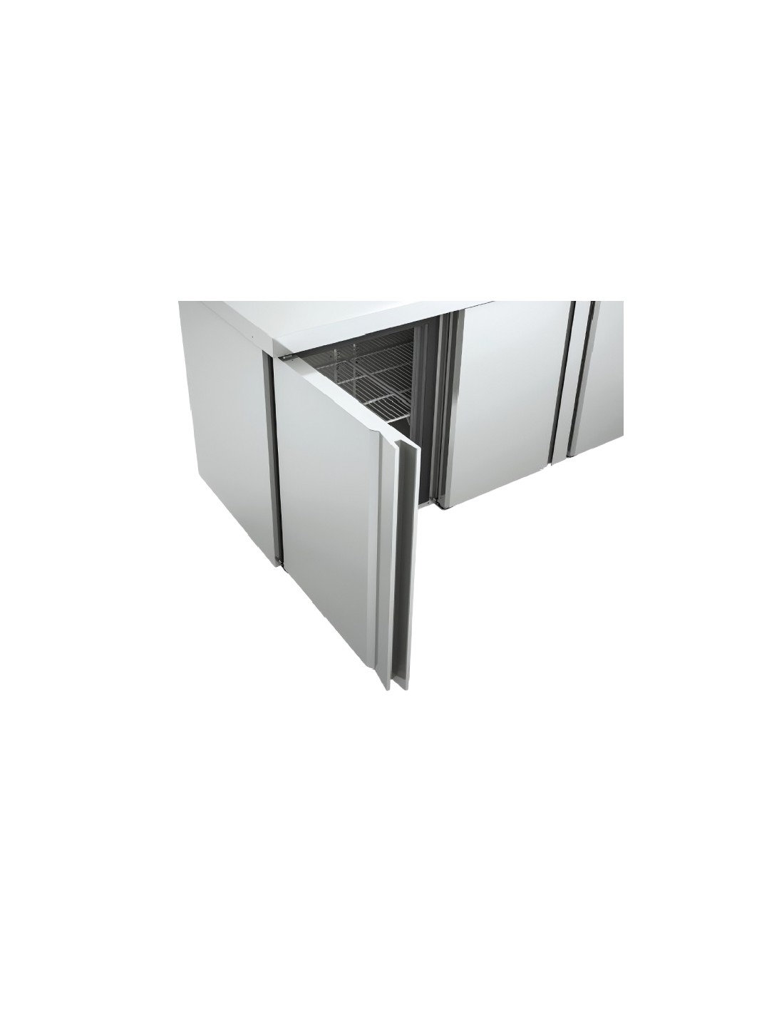 - Este bajo mostrador de 3 puertas, tiene posibilidad de apertura en ambos sentidos, equipadas con un mecanismo de cierre automático y burlete magnético que mantiene la puerta abierta al superar los 90° de apertura.