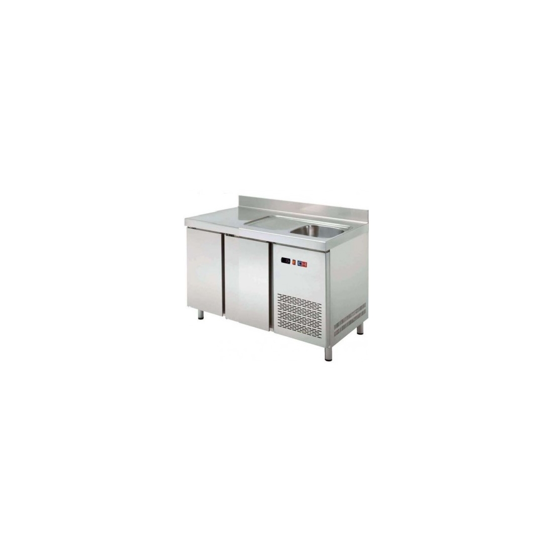 - Mesa Refrigerada con fregadero MRCH-150F dotado con dos puertas de almacenaje.