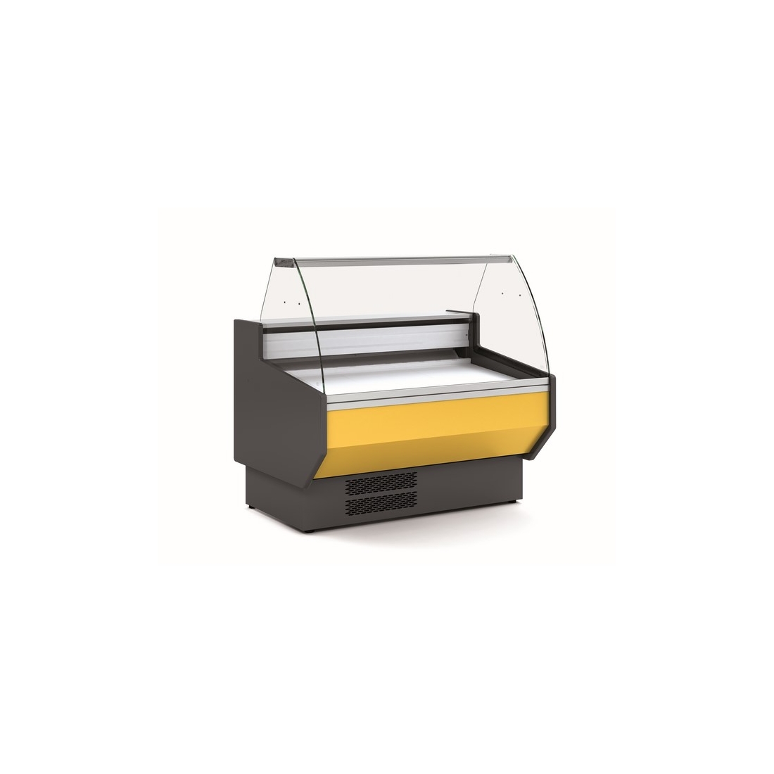 Vitrina de charcutería con unas dimensiones de 1025 x 940 x 1235 milímetros. Equipada con una superficie de exposición de 640 milímetros. Incluye 1 puerta trasera de reserva para el almacenamiento con una capacidad de 299 litros. Refrigeración de alto rendimiento, con consumo energético reducido. Diseñada con tipo de cristal curvo.