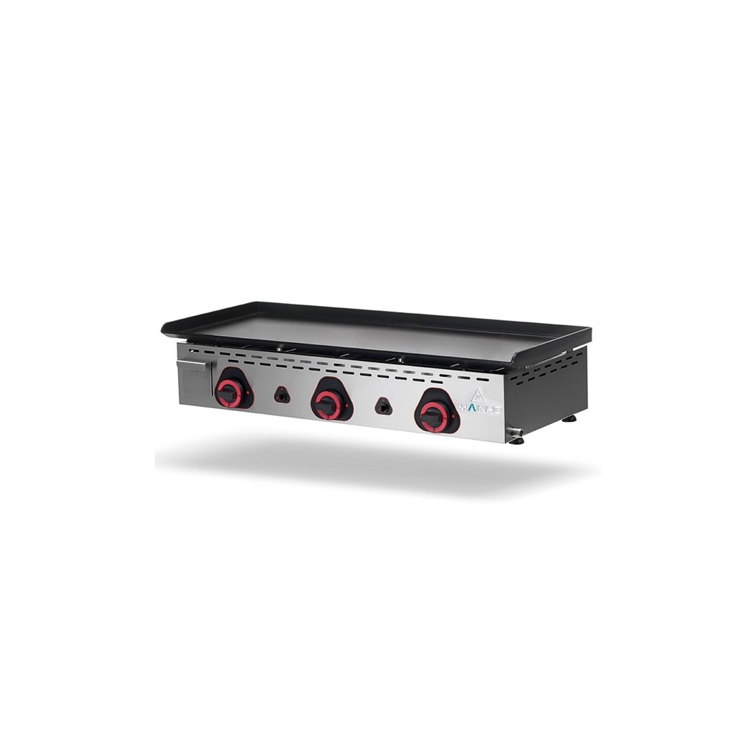 Plancha industrial a gas de 90cm fabricada en España por la marca Mainho, presenta una placa de cromo duro de más de 60 micras y 12 mm de espesor para garantizar una distribución homogénea del calor. El encendido piezoeléctrico y las válvulas termostáticas ofrecen un control preciso de la temperatura. Potencia de 12,7 kw y 10.922 Kcal/h.