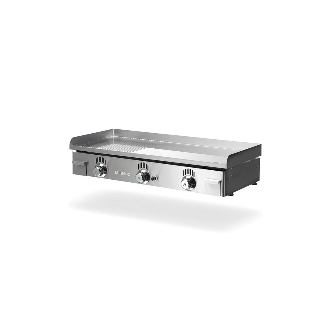 Plancha industrial a gas de 90cm fabricada en España por la marca Mainho, presenta una placa de cromo duro de más de 60 micras y 12 mm de espesor para garantizar una distribución homogénea del calor. El encendido piezoeléctrico y las válvulas termostáticas ofrecen un control preciso de la temperatura. Potencia de 12,7 kw y 10.922 Kcal/h.