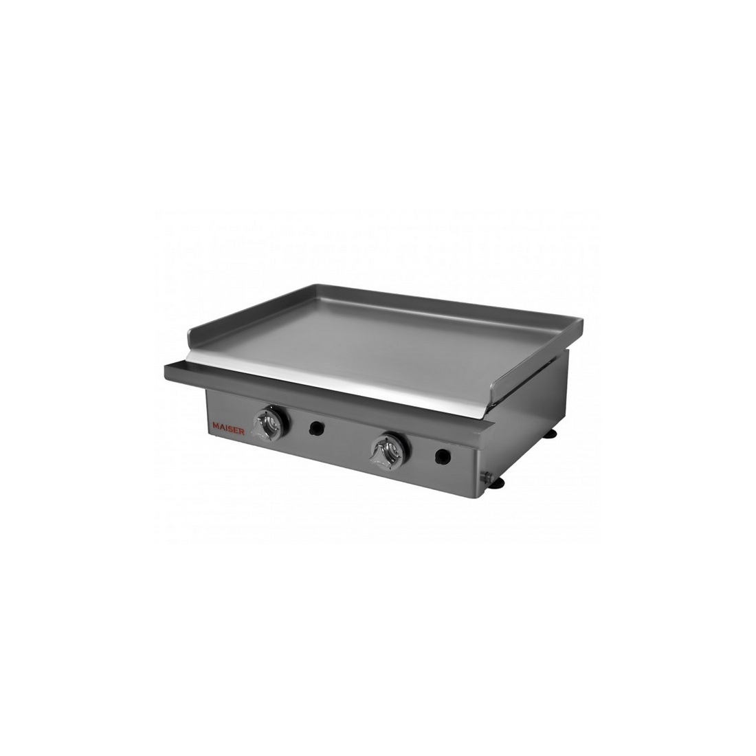 Plancha profesional a gas para hostelería con placa desmontable para su sencilla limpieza. Tamaño placa: 80 x 40cm. Cuenta con una potencia de: 8,9Kw, dos válvulas y termopar de seguridad. Placa de acero laminado de 6mm de espesor.