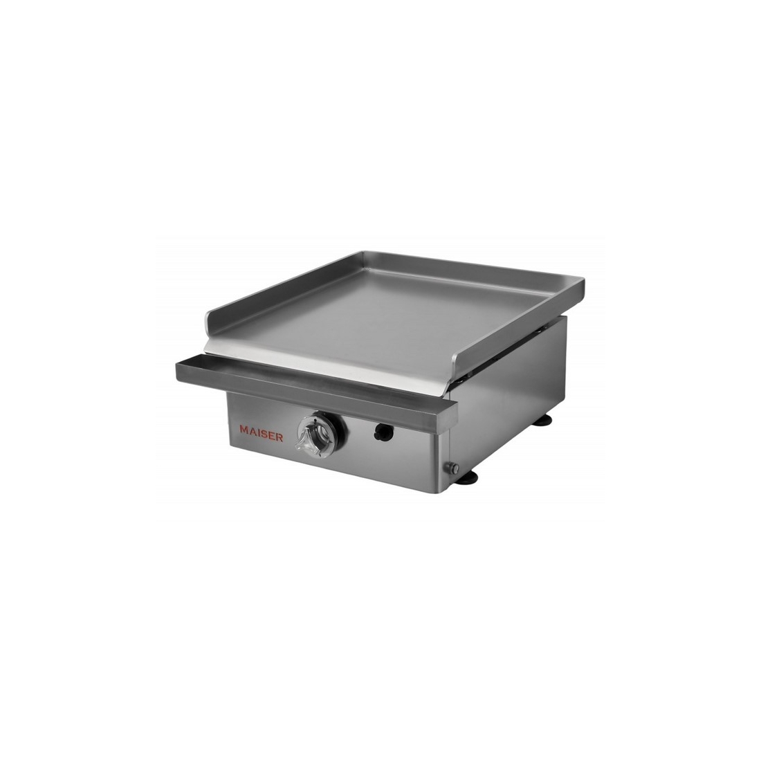 Plancha profesional a gas para hostelería con placa desmontable para su sencilla limpieza. Tamaño placa: 80 x 40cm. Cuenta con una potencia de: 8,9Kw, dos válvulas y termopar de seguridad. Placa de acero laminado de 6mm de espesor.