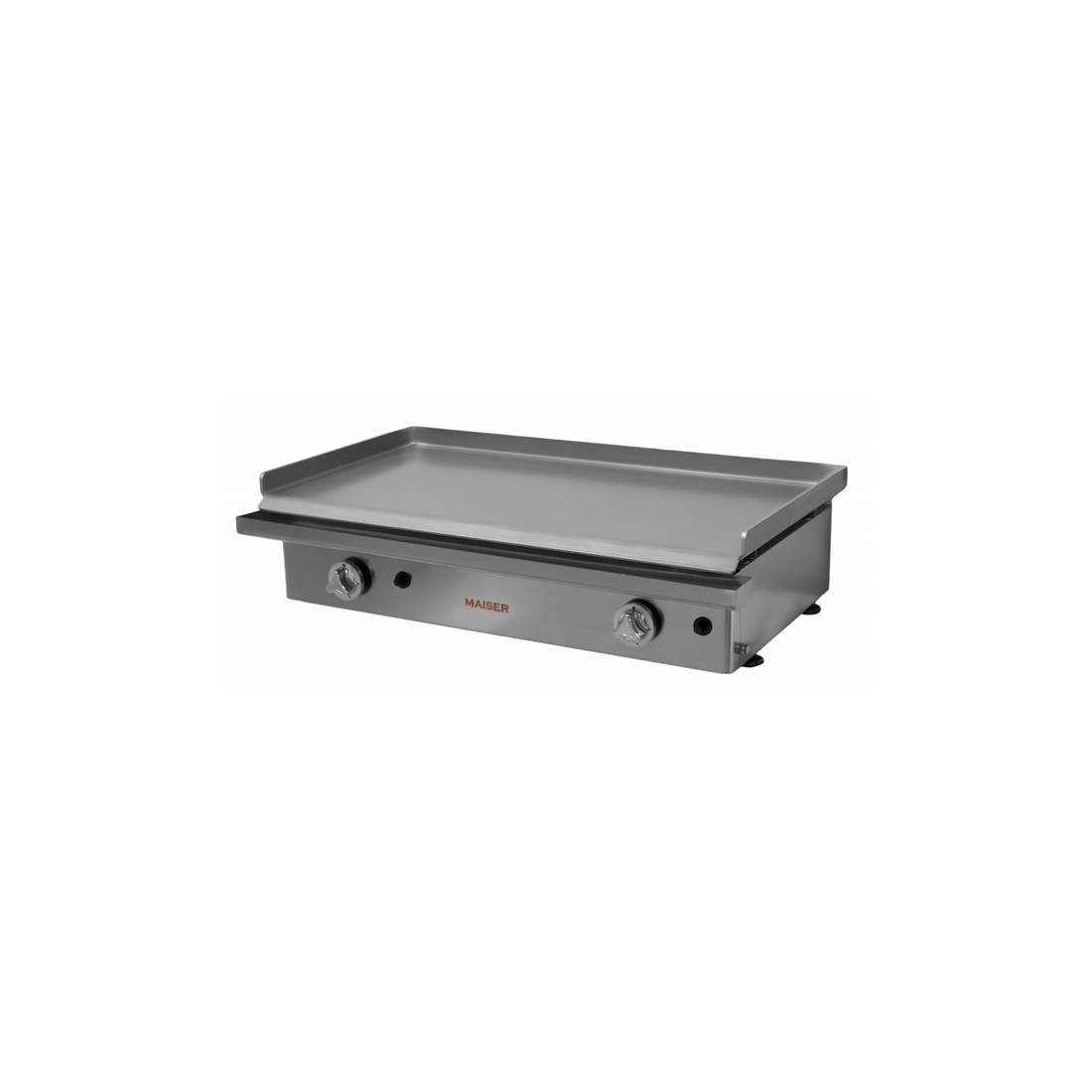Plancha profesional a gas para hostelería con placa desmontable para su sencilla limpieza. Tamaño placa: 60 x 40cm. Cuenta con una potencia de: 6,4Kw, dos válvulas y termopar de seguridad. Placa de acero laminado de 6mm de espesor.