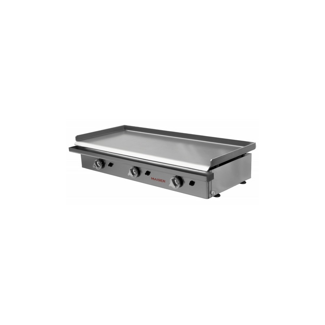 Plancha profesional a gas para hostelería con placa desmontable para su sencilla limpieza. Tamaño placa: 80 x 40cm. Cuenta con una potencia de: 8,9Kw, dos válvulas y termopar de seguridad. Placa de acero laminado de 6mm de espesor.