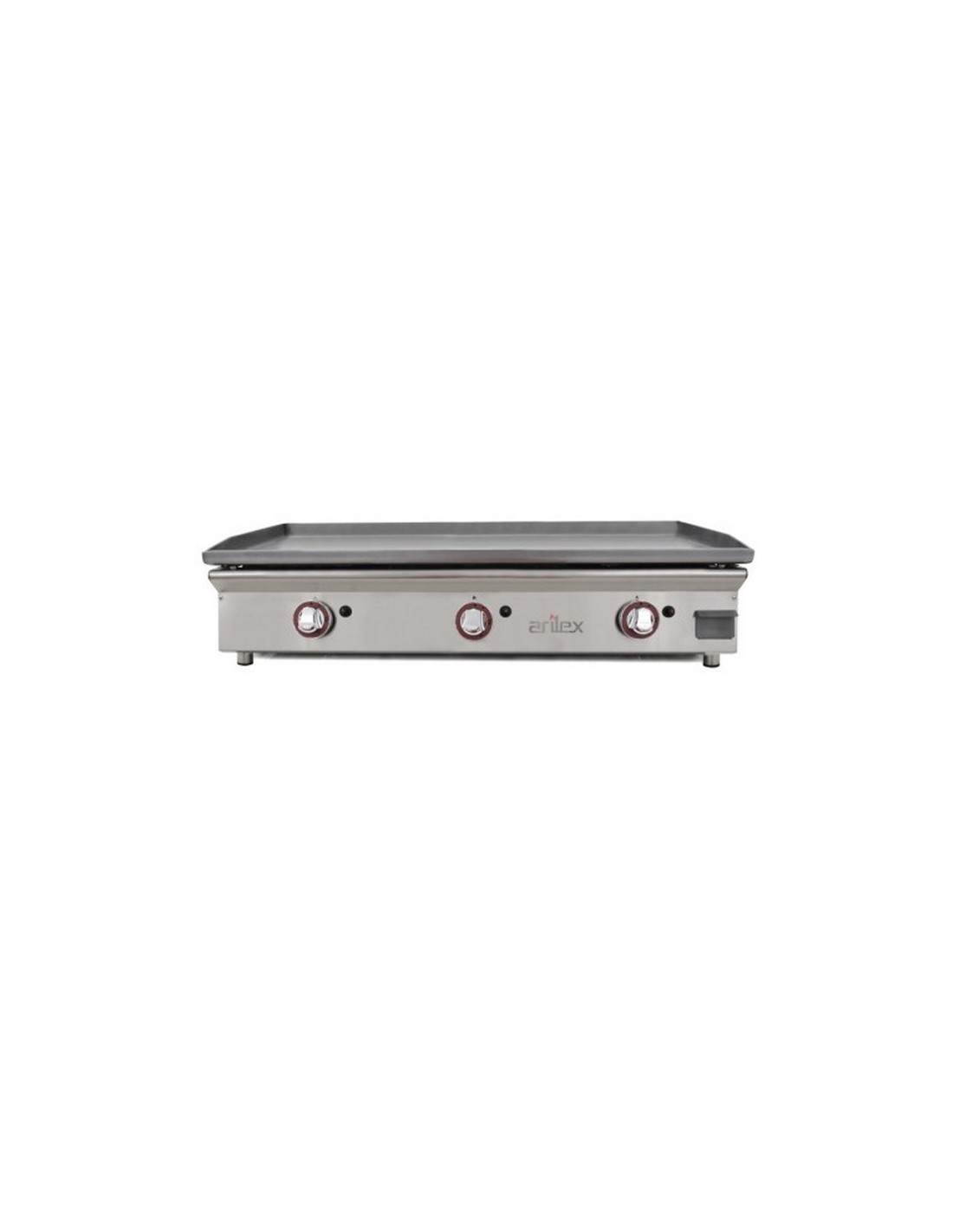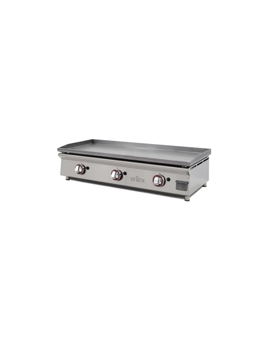 Plancha de asar a gas, con una potencia de 8,25kw está fabricada en acero laminado con protección anti oxidación con 6mm de espesor y peto trasero de 36mm. Tiene un quemador diseñado por Arilex sin "Zonas Frías" con salida de llama por todo el perímetro de la placa que nos asegura un reparto uniforme de calor.