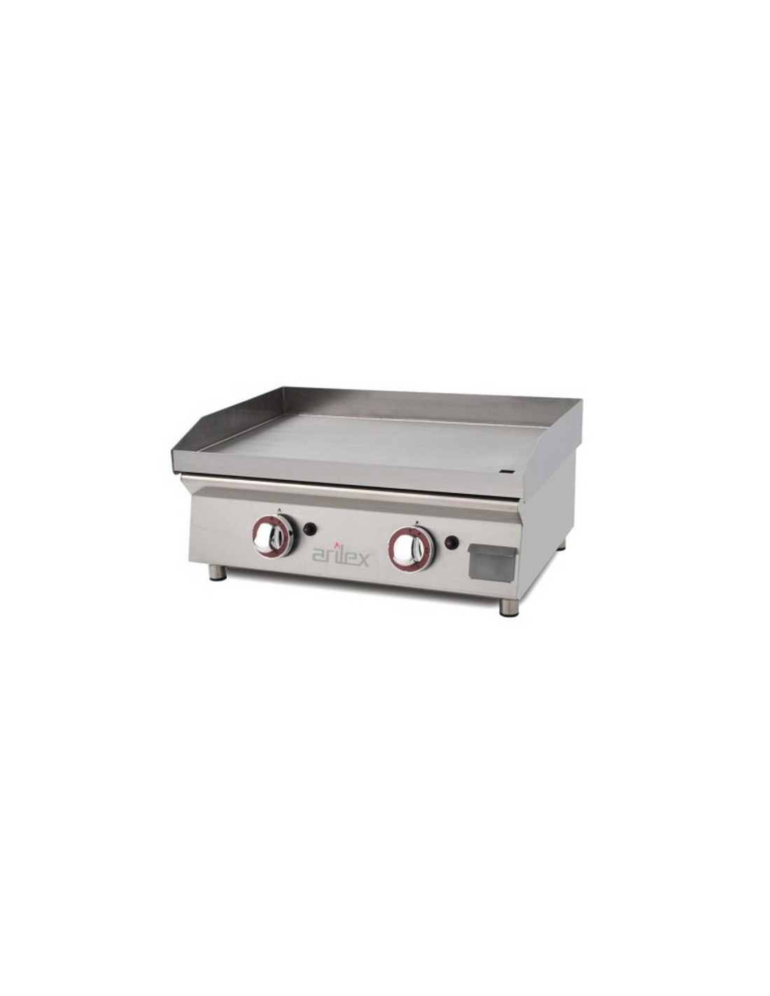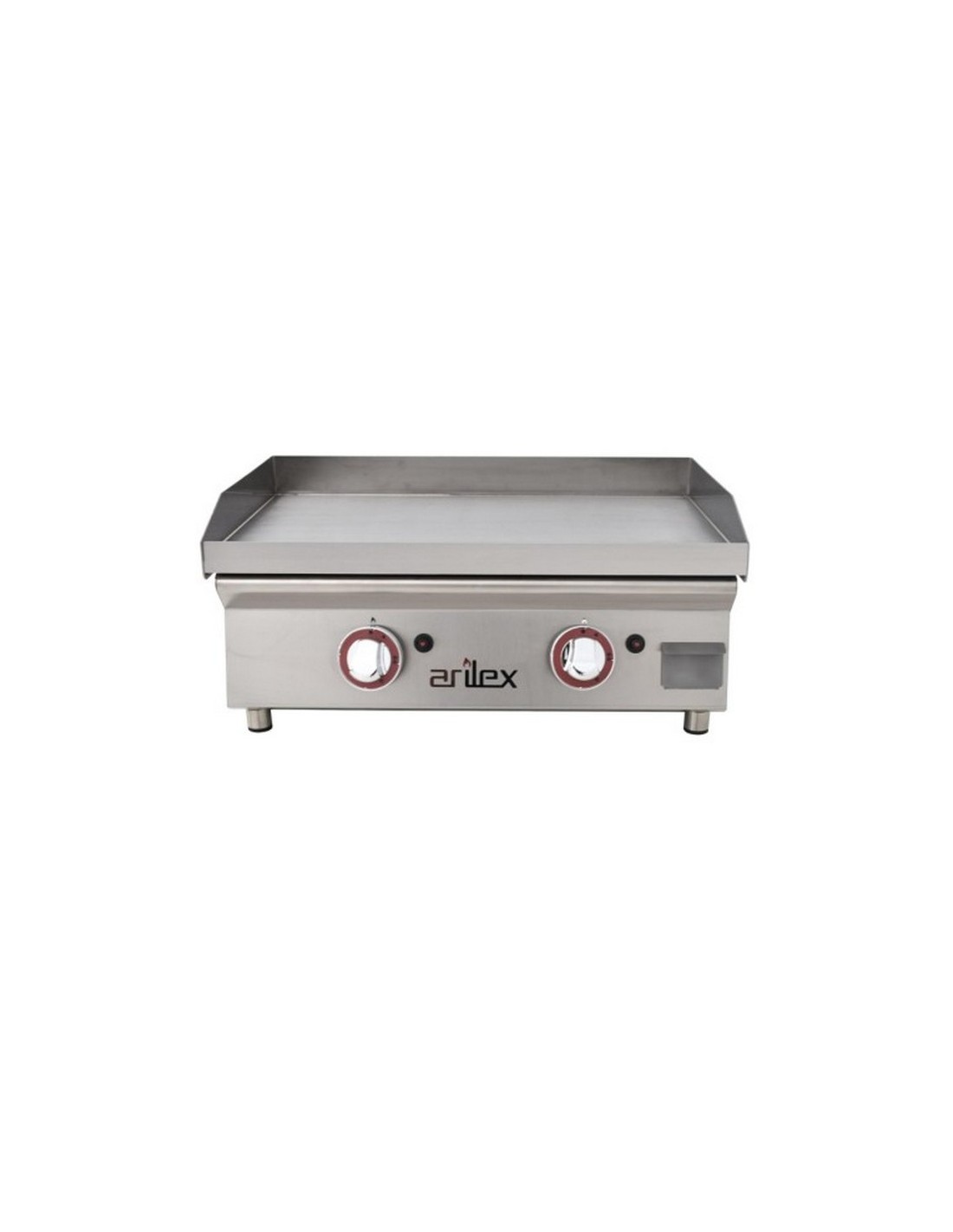 Plancha industrial acero rectificado 60PGR de Arilex, construida en acero rectificado de 15mm de espesor con tratamiento antioxidación. Este modelo de plancha industrial es a gas, está construida en acero inoxidable acabado brillo. Su diseño es único en el mercado ya que permite levantar totalmente la placa para facilitar su limpieza, mantenimiento y transporte. El quemador es especial diseñado por Arilex sin "Zonas Frías".