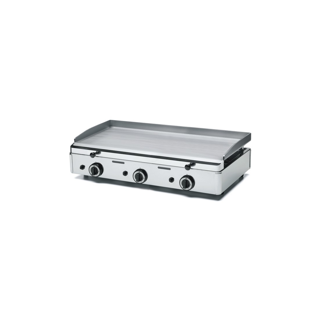Plancha Profesional a Gas de 90cm. Su placa de acero laminado de 6mm garantiza un rendimiento excepcional. Cuenta con una potencia de: 12,7Kw y con tomas de Gas en ambos lados, facilitando así la conexión y adaptación a la distribución de tu cocina.