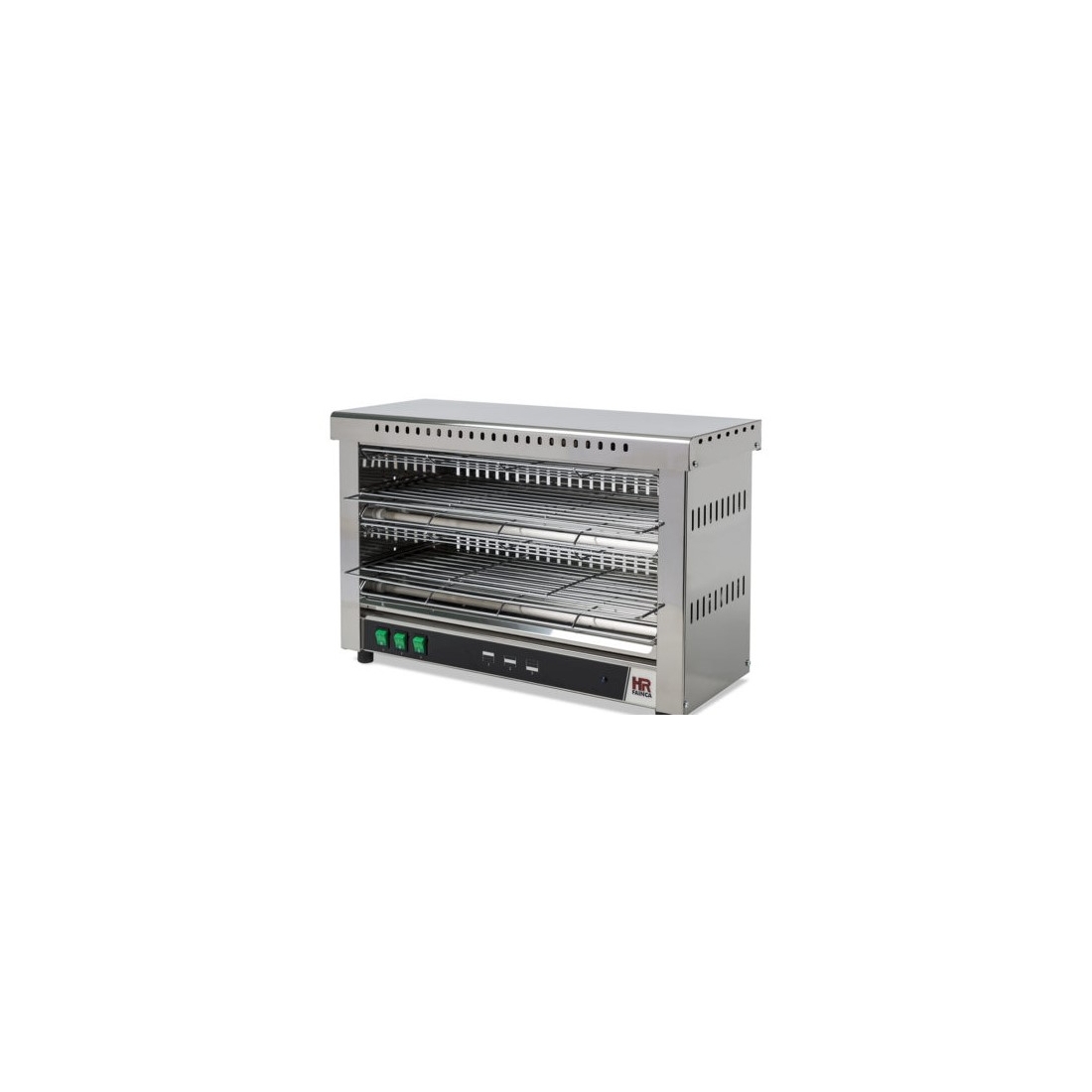Tostador Industrial Doble T09SIN de HR FAINCA, es un modelo de tostador industrial muy potente con resistencias en tubo de cuarzo protegidas por parrillas. Modelo sin temporizador.