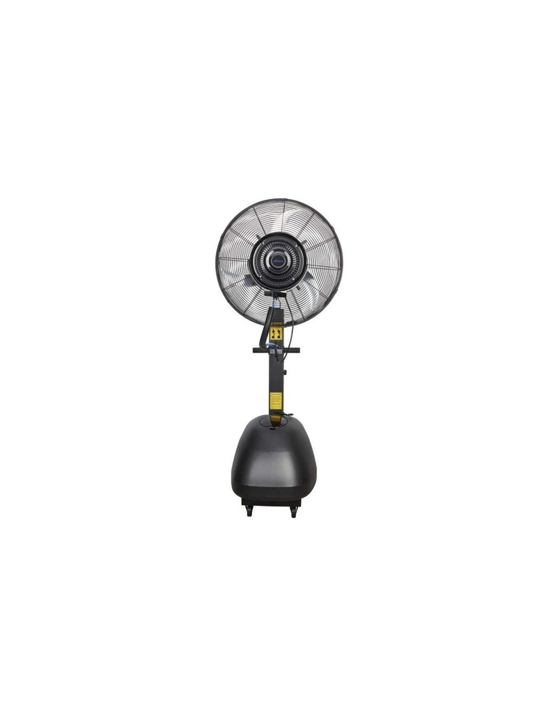 Ventilador industrial con sistema de nebulización, diseñado para refrescar terrazas, patios y espacios de trabajo al aire libre. Equipado con depósito de 60 litros, 6 velocidades regulables y control digital, proporciona enfriamiento eficiente en áreas de hasta 50 m². Bajo consumo, fácil transporte y gran autonomía.