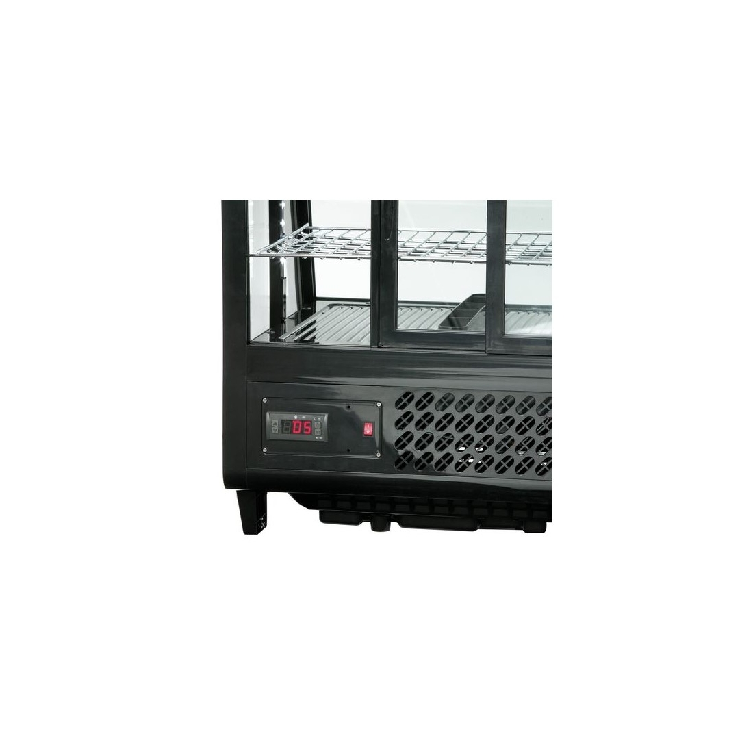 Vitrina de refrigeración de pequeñas dimensiones: 68 x 45cm, ideal para negocios de restauración que necesiten una zona de refrigeración extra. Cuenta con descarche automático, refrigeración ventilada, luz Led y dos estantes de: 60 x 30cm. Disponible en Color Negro o Blanco.