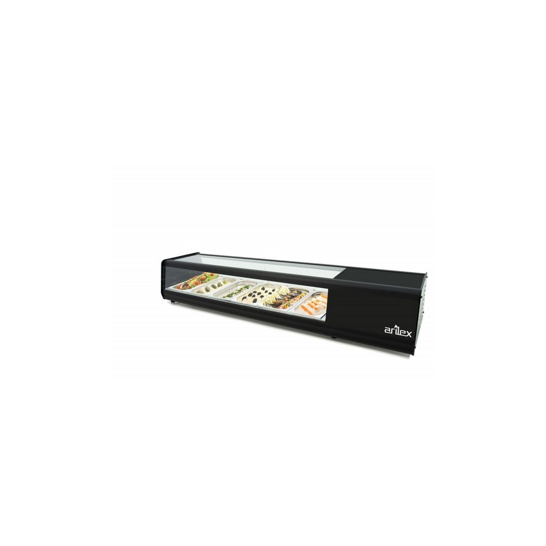 Vitrina de Tapas 4VTG de Arilex, con capacidad para cuatro cubetas GN 1/3-40 y un rango de temperatura +2 / +6ºC. Color Negro.