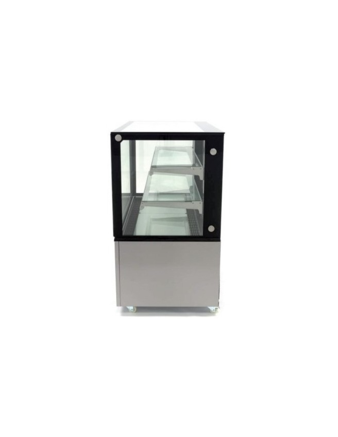 Vitrina pastelera con cristal recto y dos estantes. Modelo de refrigeración ventilada con 410 litros de capacidad. Sus dimensiones son: 1225 x 675 x 1215mm. Cuenta con vidrio de doble capa templado, endurecido y con sistema anti condensación.